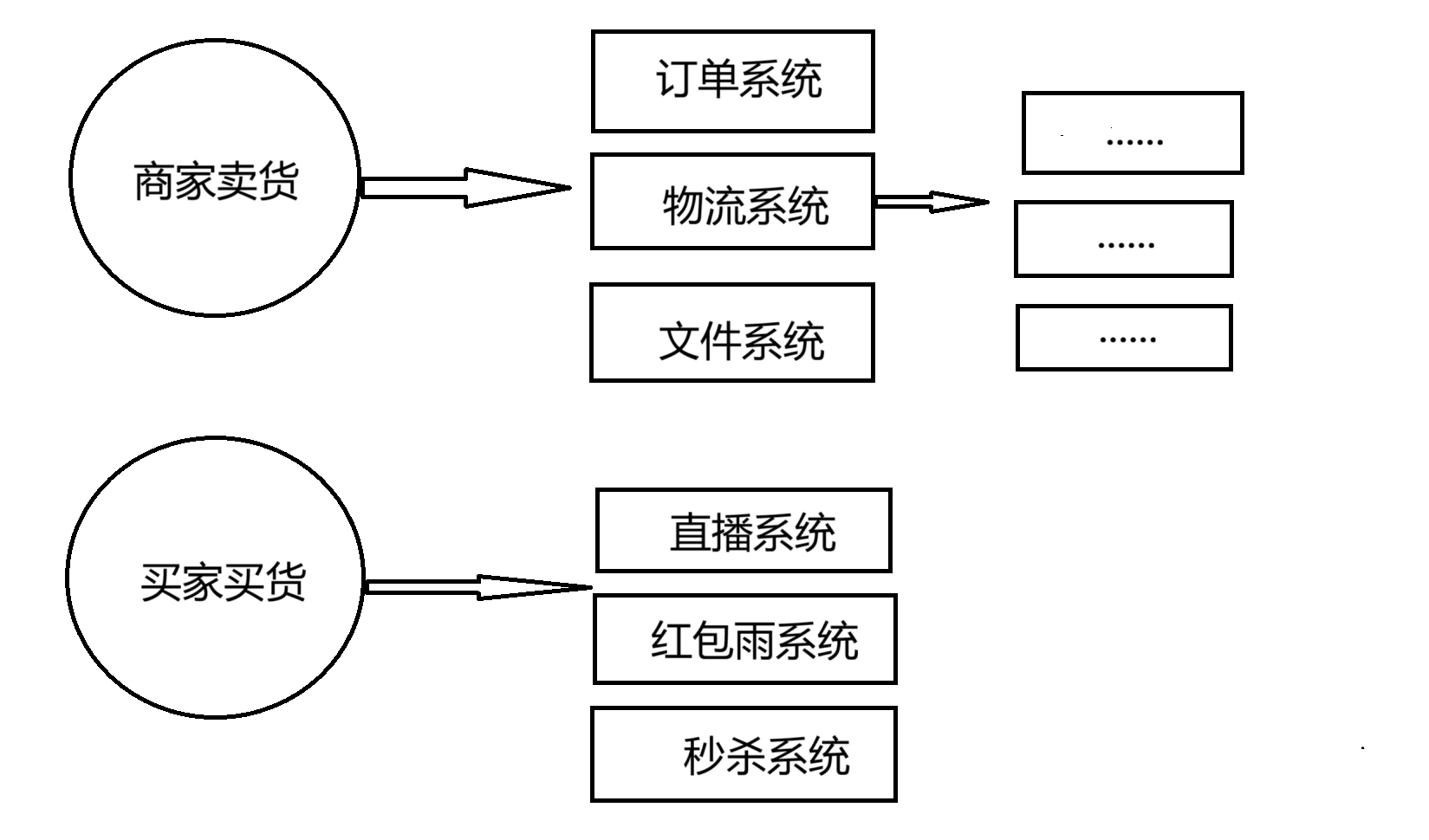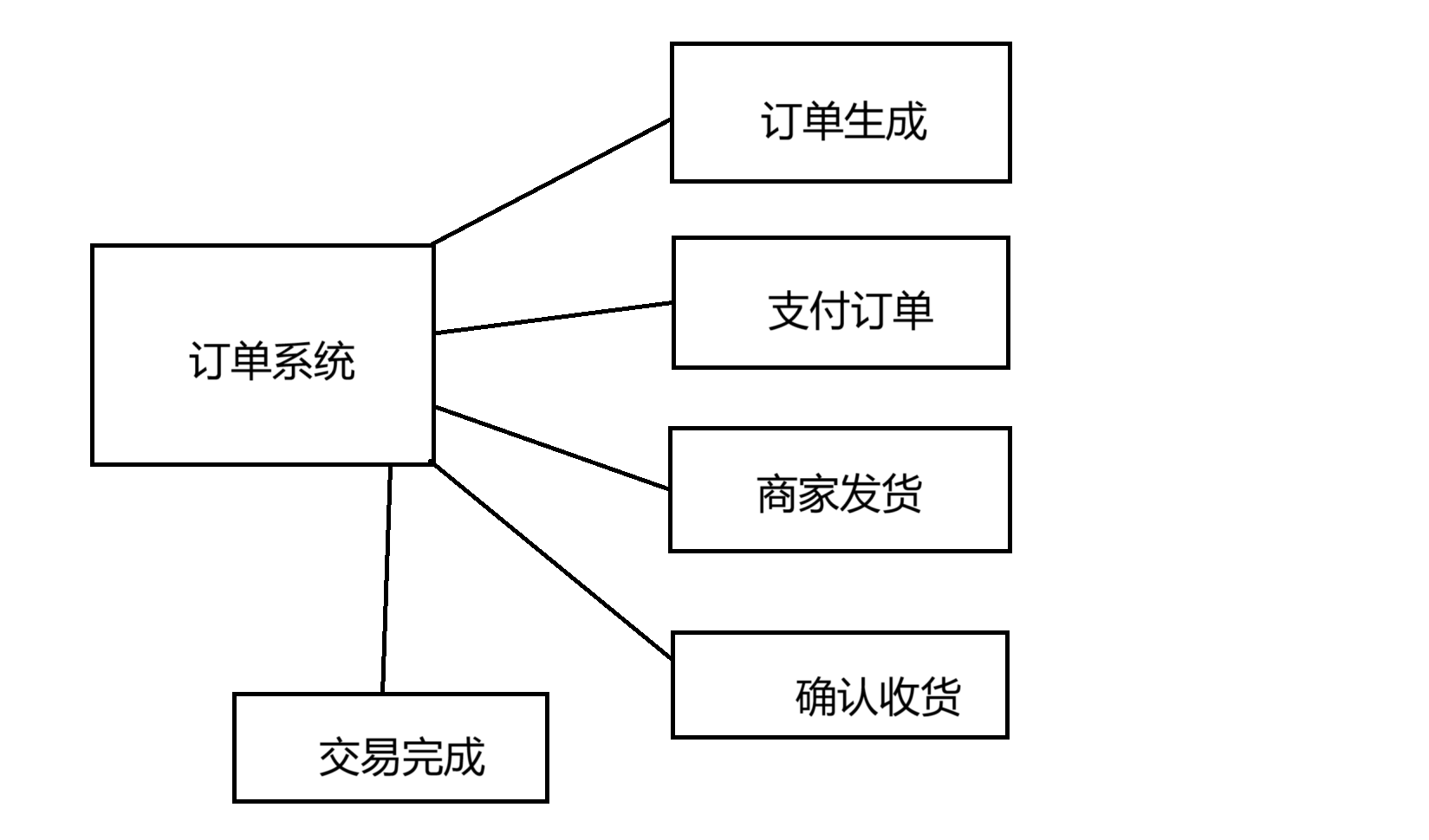 订单系统:用户购买商品生产订单生成在进行支付生产支付订单支付完商家发货用户收到生产确认收货在交易完成